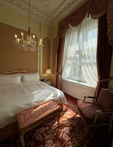 🛏️ Rooms: 138 elegant, classically furnished rooms and suites featuring chandeliers, period décor, and spacious layouts