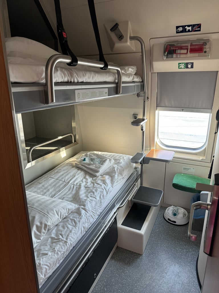Overall, the journey was far more restful than I anticipated. My husband and I were both able to sleep through the night without any issue. Thankfully, the train wasn’t too noisy or disruptive — though I could hear the occasional flush from a neighboring bathroom and light corridor chatter. If you’re a light sleeper or sensitive to noise, I’d recommend bringing earplugs just in case.