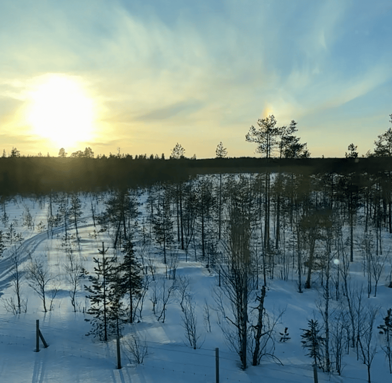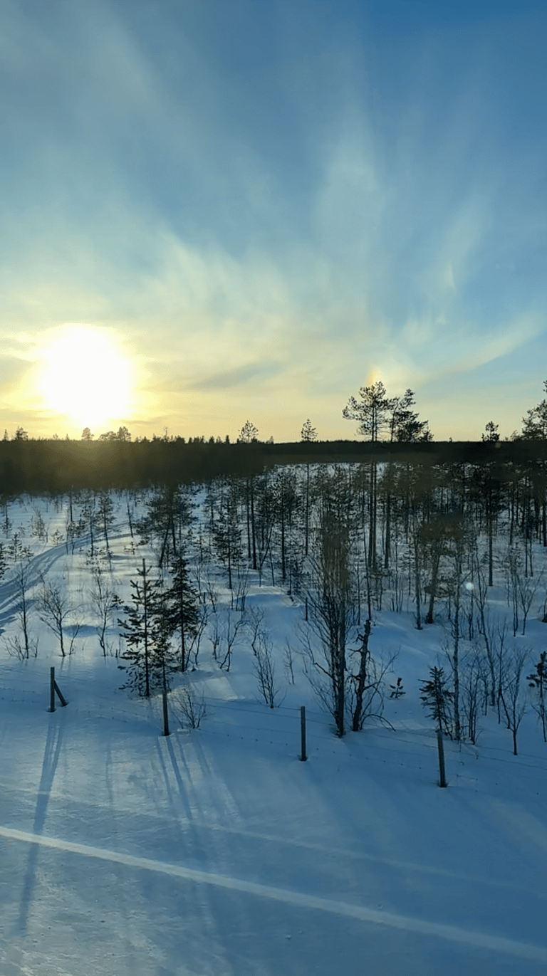 The views were a true highlight. Watching the sun set over snowy forests and waking up to a golden sunrise lighting up the Helsinki horizon made the ride feel magical. It was also rewarding to see more of the rural landscape, including tiny villages blanketed in snow.