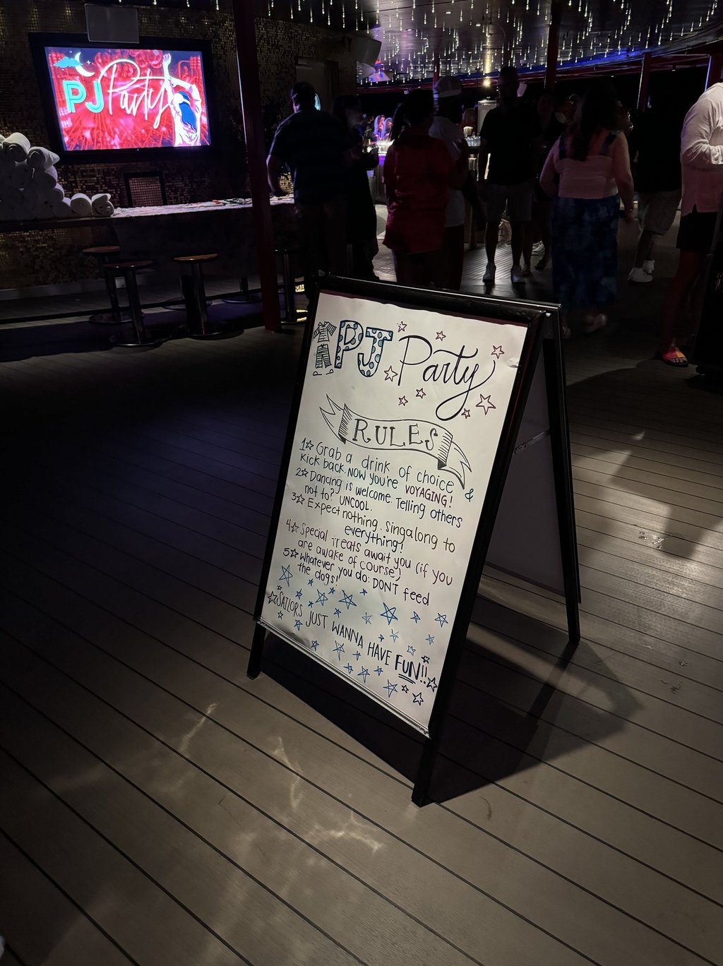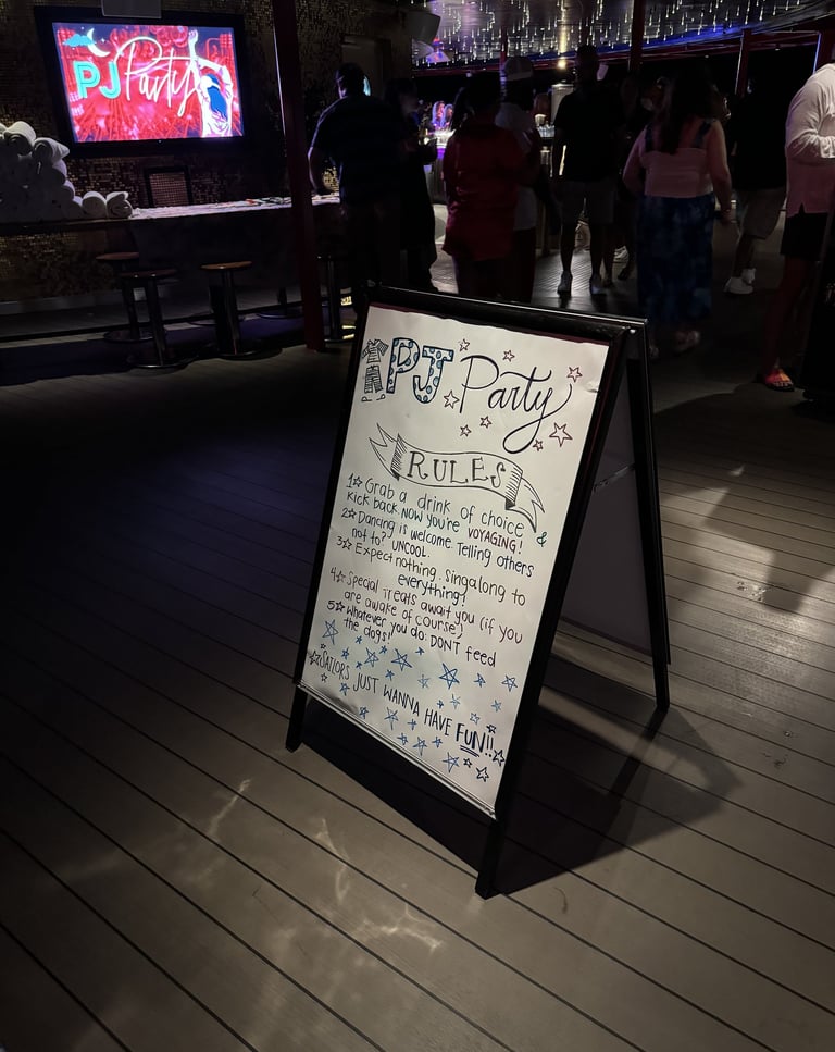 Many nights onboard feature themed parties, and sailors love to go all out. Every sailing includes a PJ party, the VHS Workout class, and Scarlett Night, so be sure to pack fun pajamas, an 80s-inspired workout outfit, and an all-red ensemble. Other themes may include disco, Latin, glow-in-the-dark, and fancy nights. Check your sailing schedule in advance to see which parties are planned. Aside from these, there’s no formal dress code onboard!