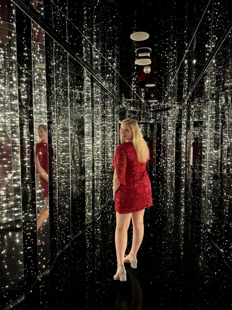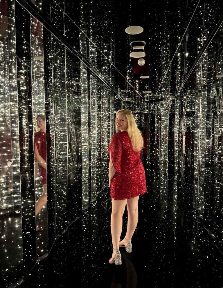 A must-visit photo spot on every Virgin Voyages sailing is the glittering hallway that leads to the Manor. Arrive early to capture your sparkly shots, as this area opens only before events held inside the Manor. On Scarlet Night, enjoy several themed photo booths where you can snap fun pictures and receive them by email for free. Check your activity schedule for these photo opportunities.